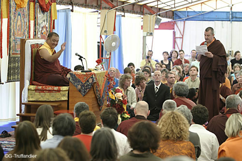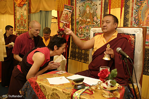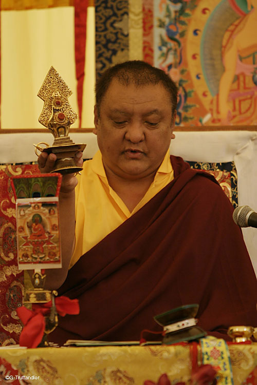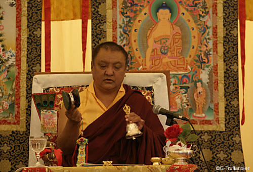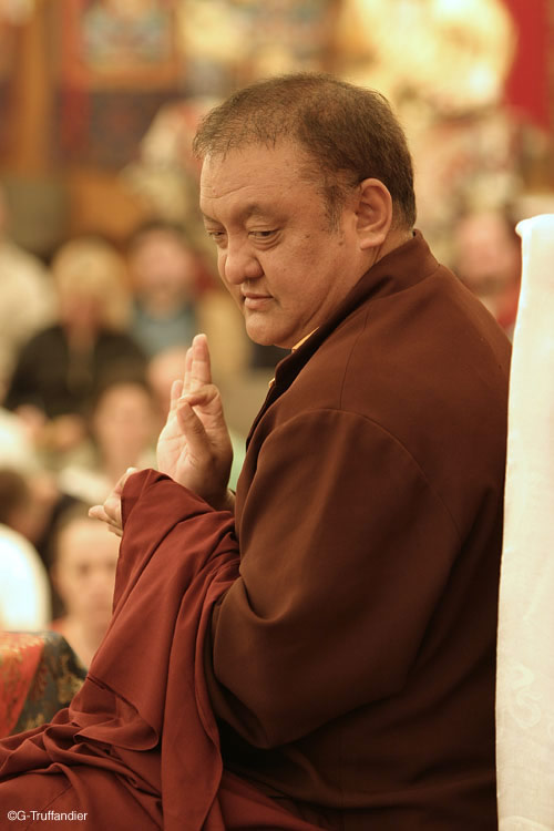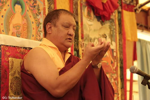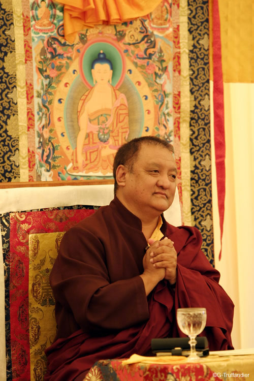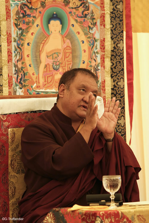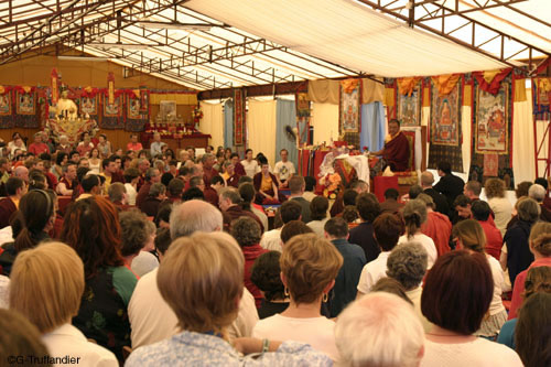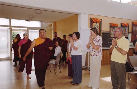 Lama Jigme Rinpoche gave an introductory teaching on the subject of Buddhist meditation in Strasbourg, 30 km from the center, on the 6th of July. The official program began on the 7th July, and over the first two weekends, Shamar Rimpoche gave a complete and thorough teaching on Samanthabhadra’s wishing prayers. He explained that all the great Bodhisattvas in India and Tibet have practice this prayer each morning and evening. Rinpoche stressed that following the wishes of Sa