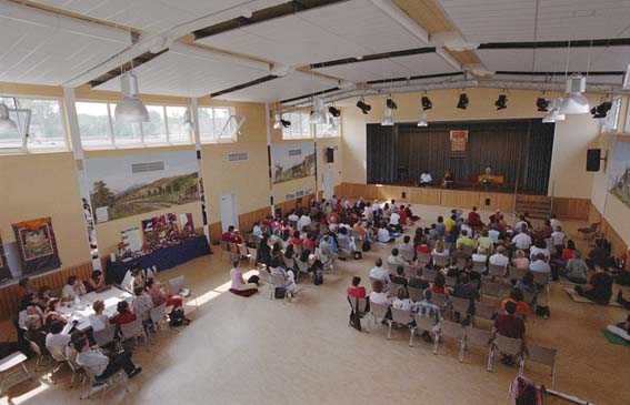 At the same time there is a big public community-hall which can be rented for very special events. This was already done during this summer when Shamar Rimpoche gave his first teachings for us in this area. There were so many visitors that it was appropriate to rent the community-hall, which can be easily reached on foot from the centre.